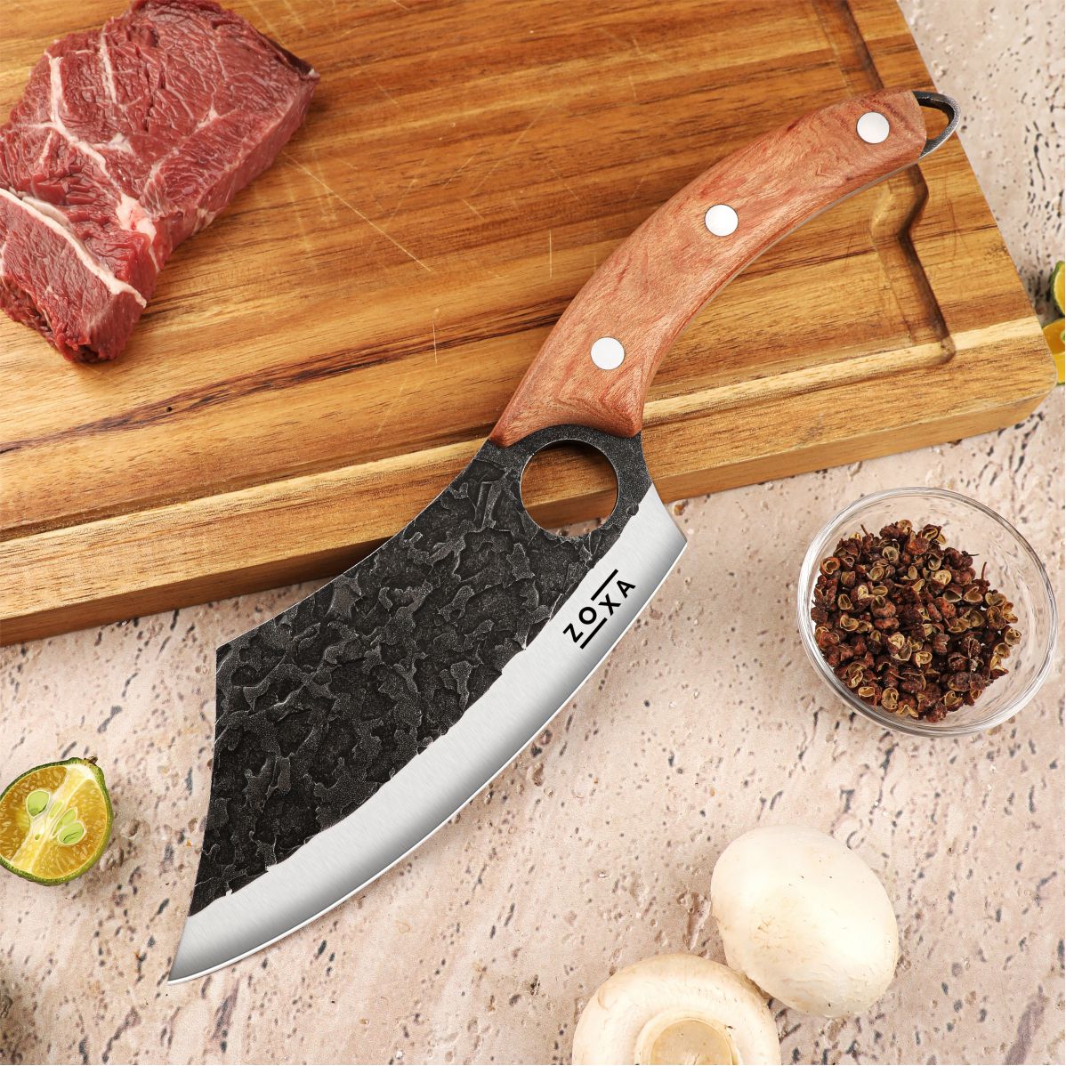 Forged from HRC 58+ High Carbon 5Cr15 Steel for incredible, long-lasting edge retention